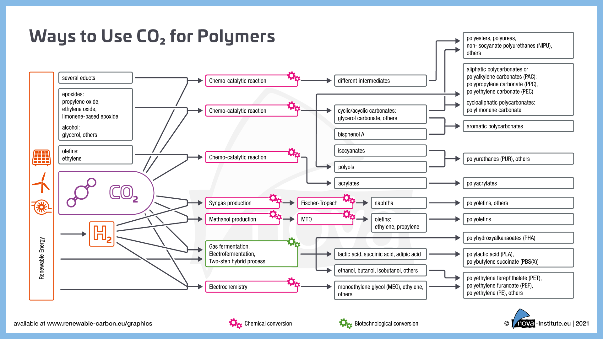 "Carbon Dioxide (CO2) as Chemical Feedstock for Polymers - Technologies, Polymers, Developers and Producers": The completely revised and extended third version of this unique trend report addresses the polymer industry, brands, technology scouts, investors, and policymakers. The report provides 100 pages of information on CO2 utilisation for chemical building blocks and polymers.