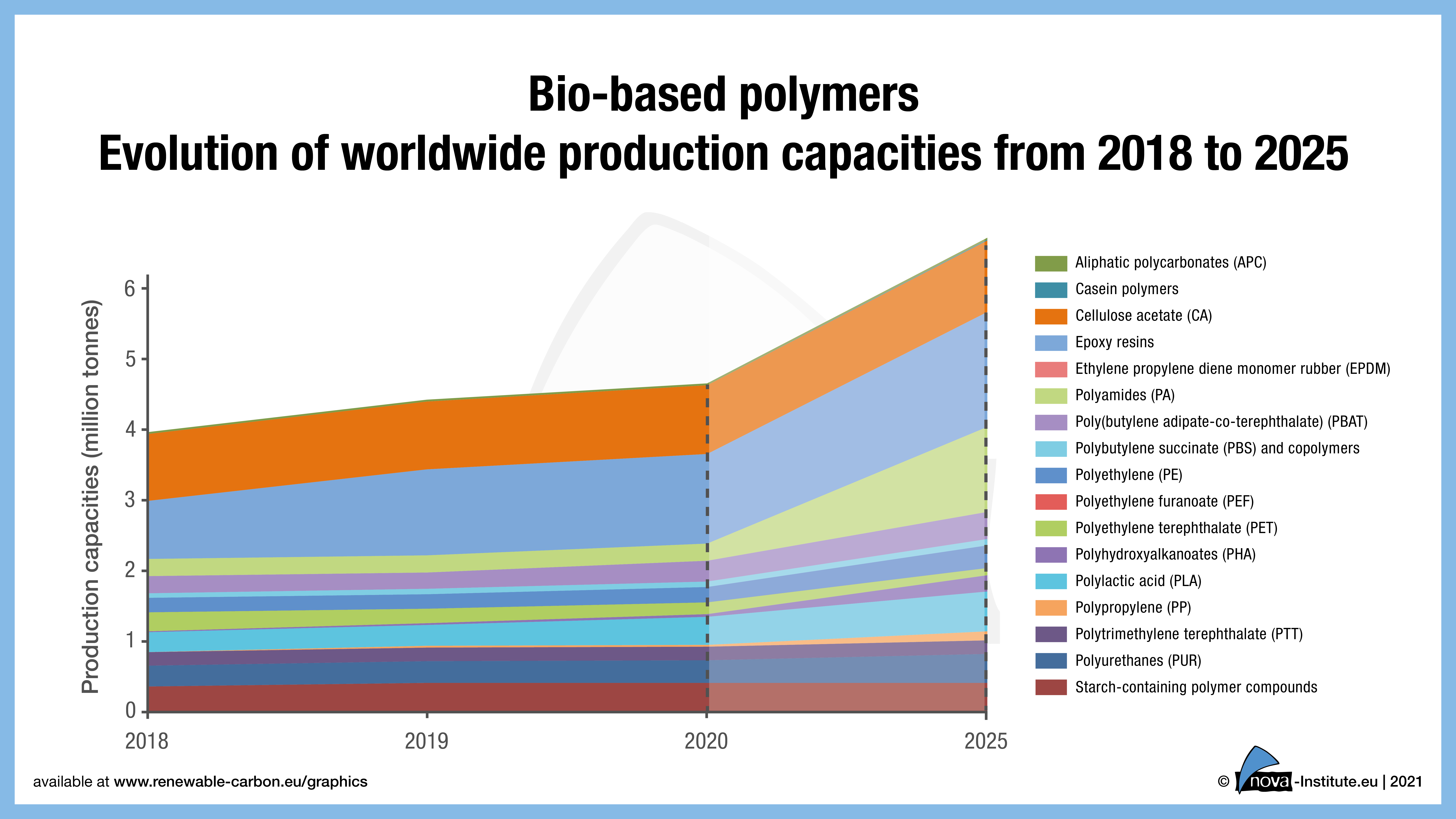 "Bio-based Building Blocks and Polymers – Global Capacities, Production and Trends 2020 – 2025": The annually updated version of this above 300-page market report provides a deep and comprehensive insight into the dynamic global bio-based building blocks and polymers market in 2020. The year 2020 was a promising year for bio-based polymers: Sold out PLA in 2019 has led to the installation of increased capacities, PE and PP made from bio-based naphtha are breaking ground and future expansion for bio-based polyamides as well as for PBAT, PHAs and casein polymers is on the horizon. Lower production is only observed for bio-based PET.