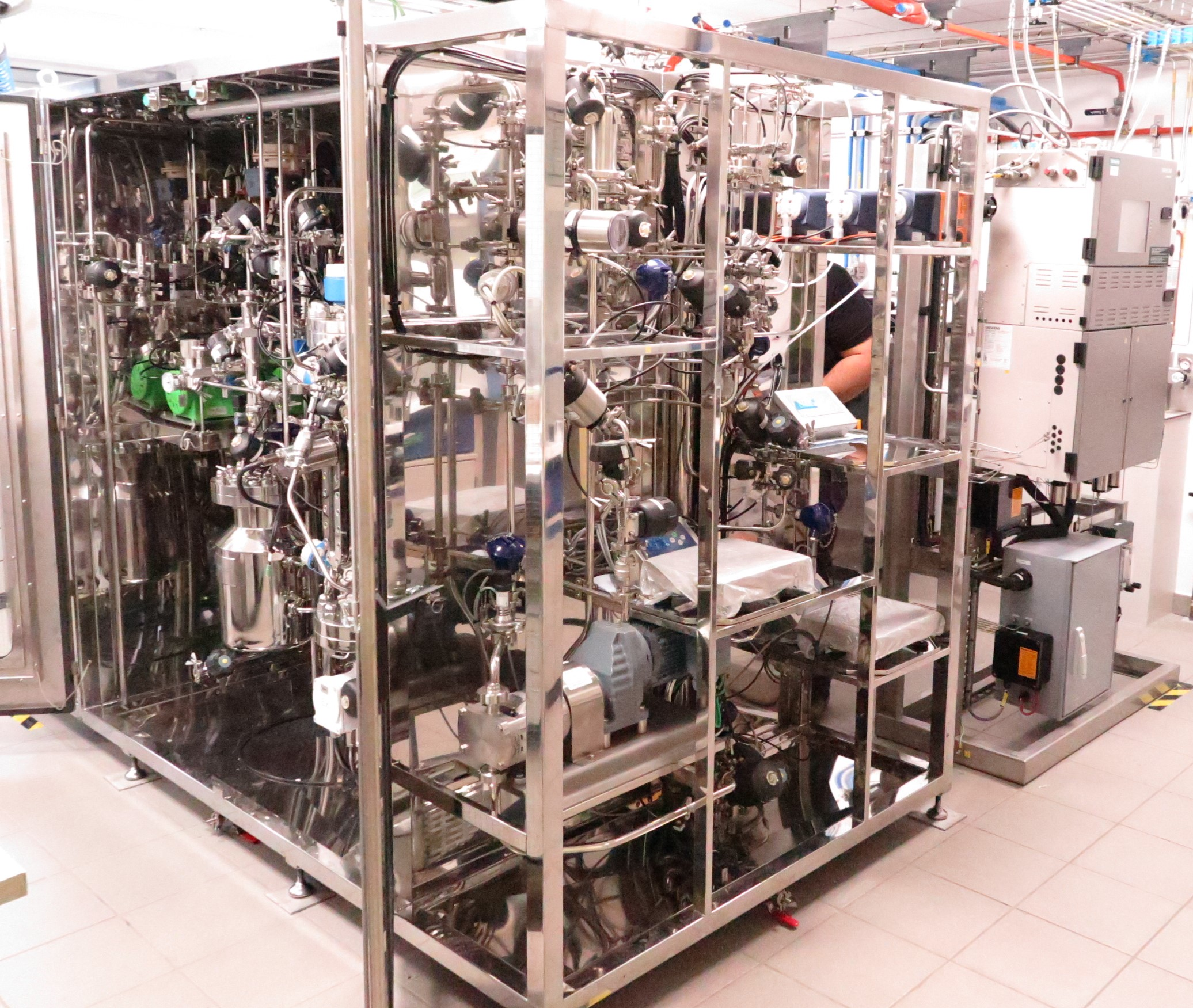 The high-pressure fermenter is far beyond the lab scale. ‘It is a prototype that can address several research questions before scale-up to an industrial level,’ says Van Hecke. ‘Its size and complexity are well suited to answer fundamental questions: we study processes in detail and try to optimise them based on the gathered insights. To that end, we want to have as many online measurements and steering capabilities as possible.’