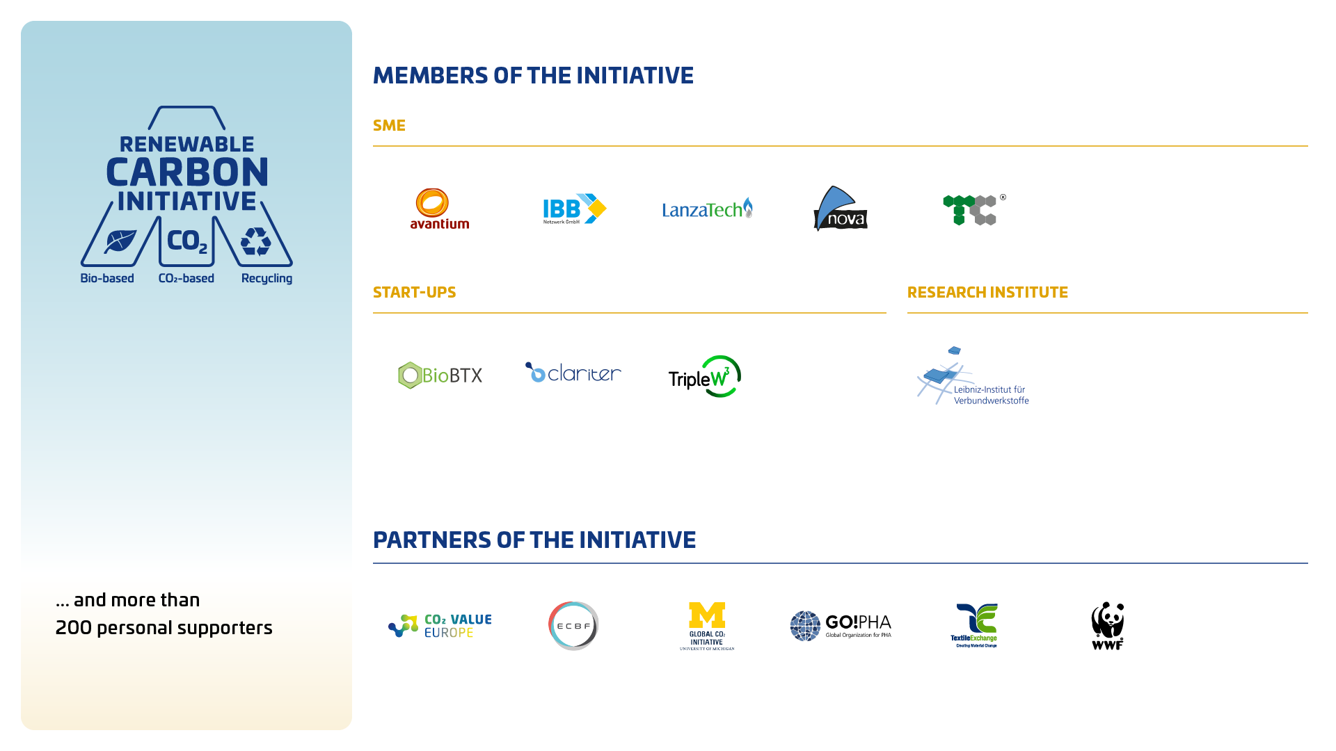 To discuss, promote and realise the shift, 30 innovative companies have already joined forces to support the transition to renewable carbon, considering both technological and economical approaches – and helping to shape the political framework accordingly.