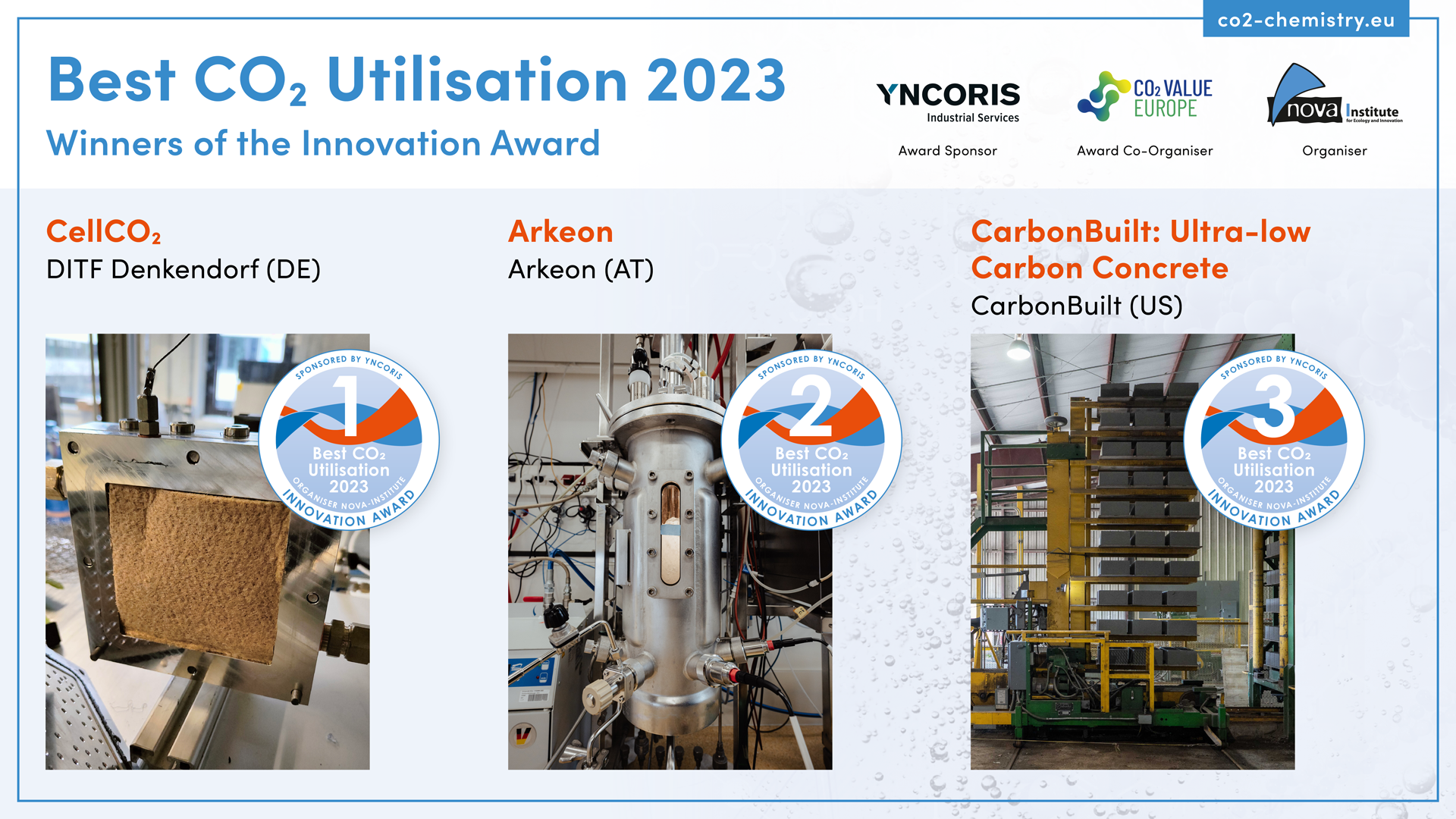 The Innovation Award “Best CO2 Utilisation 2023” was sponsored by YNCORIS, a service partner for the future-proof chemical industry, and is co-organised by nova-Institute and CO2 Value Europe, the international association representing the CCU community in Europe and beyond.Â